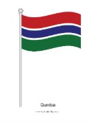 The flag of Gambia, waving on a pole, perfect for decoration or school projects.